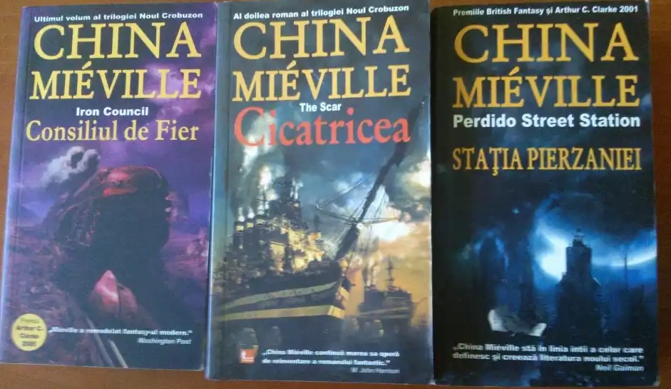 Autorul: China Miéville (n. 1972) este un scriitor din Marea Britanie, care a debutat în 1998 cu romanul Regele Șobolan. Părăsește curând abordarea dark fantasy – horror, devenind unul dintre cei mai cunoscuți scriitori de New Weird. A cucerit publicul și juriile marilor premii cu Trilogia Noul Crobuzon. Publică în fiecare an câte un roman și este nelipsit din listele cu nominalizări la marile premii de SF și fantasy. Are în palmares șapte premii Locus, trei Arthur C. Clarke, două British Fantasy, câte un premiu Hugo, World Fantasy, British SF și premii pentru cel mai bun roman străin cucerite în Spania, Franța și Germania. (sursa: editura-paladin.ro – din moment ce tritonicii nu au binevoit să-i facă pagină de autor).