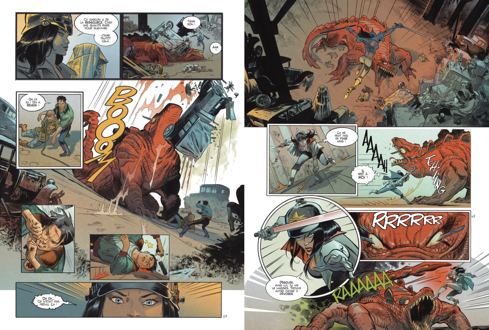 Dacă povestea este simplă, spectaculoasă și amuzantă, arta este exact la fel, simplă, spectaculoasă și colorată. Îmi place foarte mult Herenguel, se pricepe de minune să construiască atmosfera și să deseneze scene de acțiune, peisaje uimitoare, animale și fiare. Nu e chiar așa de bun la desenat fețe, totuși, dar nu le poți avea pe toate… 🙂
