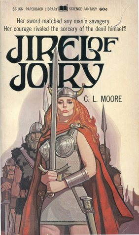 Acest personaj formidabil, apărut în anii ‘30 într-o serie de povestiri din revista Weird Tales, este creația lui C.L. Moore (1911-1987), unde C.L. vine de la Catherine Lucille. Tânăra secretară debutantă într-ale literaturii la numai 22 de ani a preferat să semneze cu inițialele nu ca să treacă drept bărbat, cum s-ar putea crede, ci ca să nu se prindă șefii ei că e vorba despre ea. Eroina ei, Jirel de Joiry, despre care americanii jură că e cea dintâi spadasină din literatura fantasy, este protagonista a cinci povestiri adunate ulterior într-un volum purtând numele personajului. Povestirile sunt, din păcate, inegale și nu atât de aventuroase pe cât te-ai aștepta de la o eroină ca aceea descrisă mai sus. Atmosfera este vizibil lovecraftiană și la fel și curgerea poveștii: e ceea ce s-ar numit un fantasy de tip portal, unde eroina trece într-altă lume, prin care mai degrabă rătăcește luând act de variatele ei orori și mistere, în loc să interacționeze cu ea, așa că practic avem o serie de peisaje legate între ele, nu o poveste reală. Apoi, deși Jirel ne e descrisă ca o furtună de oțel în luptă, nu o prea vedem folosind sabia. De obicei avem parte de un crâmpei de acțiune la începutul fiecărei povestiri, unde Jirel apare fie în clipele finale ale bătăliei, fie după ce tocmai a învins sau a fost învinsă, fie, la un moment dat, pe patul de moarte în urma unei răni primite în luptă. Apoi intervine ceva ce o face să coboare în iad sau să ajungă printr-un portal într-o altă lume – o dată căutând un vrăjitor (în Jirel Meets Magic) și a doua oară răpită de un zeu al unul tărâm întunecat care se îndrăgostise de ea (în The Dark Lands, 1936). Acolo, în mijlocul unui peisaj sumbru – iadul imaginat de Moore, de exemplu, nu este unul cu focuri, draci și smoală, ci un ținut unde domnește noaptea veșnică, bântuit de creaturi bizare care e posibil sau nu să fi fost oameni cândva, un peisaj care nu poate fi văzut decât după ce eroina își leapădă crucea de la gât – ea poartă câte o bătălie a minții, în care, dinaintea asaltului spaimei, a răutății și a întunericului, învinge pentru că are o voință puternică și o fire pătimașă și pentru că nu uită niciodată cine este. Ceea ce este interesant în prima povestire de acest gen și cam plicticos pe la a patra, după cum se plâng cititorii, mai puțin cei pasionați de Lovecraft.