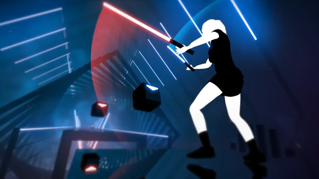 În două cuvinte, jocul te așază, cu două săbii de culori diferite în mâini, într-un tunel prin care vin spre tine cuburi de aceleași două culori, fiecare însemnate cu câte o săgeată, iar tu, jucătorul, trebuie să le tai lovindu-le pe direcția săgeților, atunci când ajung în raza de acțiune a săbiilor tale, pe fiecare cu lama de culoarea potrivită. Și asta pe muzică, jocul reușind să-ți trimită cuburi la tăiat într-un ritm care-ți va face mișcările să aducă a dans, dacă reușești să le lovești corect, în succesiune.